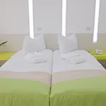 Guests seeking entertainment or business amenities will find a small conference room with terrace access, a theater-style conference room for up to 30 guests, and common areas adorned with plush sofas and vibrant colors for relaxation. The hotel's innovative approach to guest services and facilities ensures a blend of leisure and productivity.